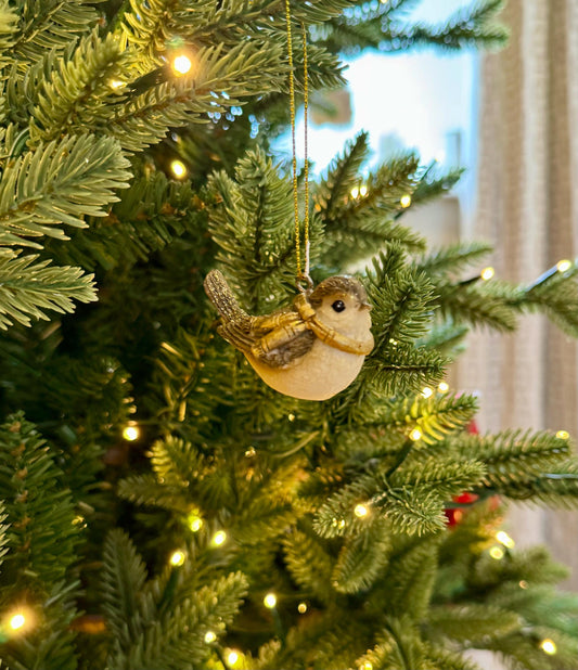 Mini Glittered Robin Christmas Bauble -Festive Bird Tree Decoration