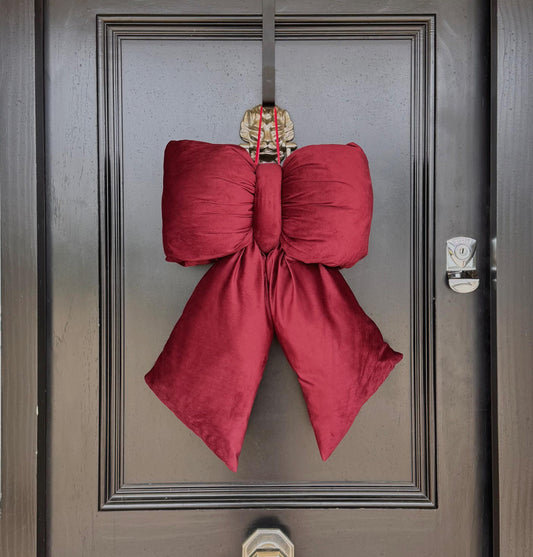 Maroon Red Velvet Plush Bow: Burgundy Door, Tree & Christmas Decor
