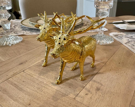 Gold Plated Stag Salt and Pepper Set in Gold Plated Pewter