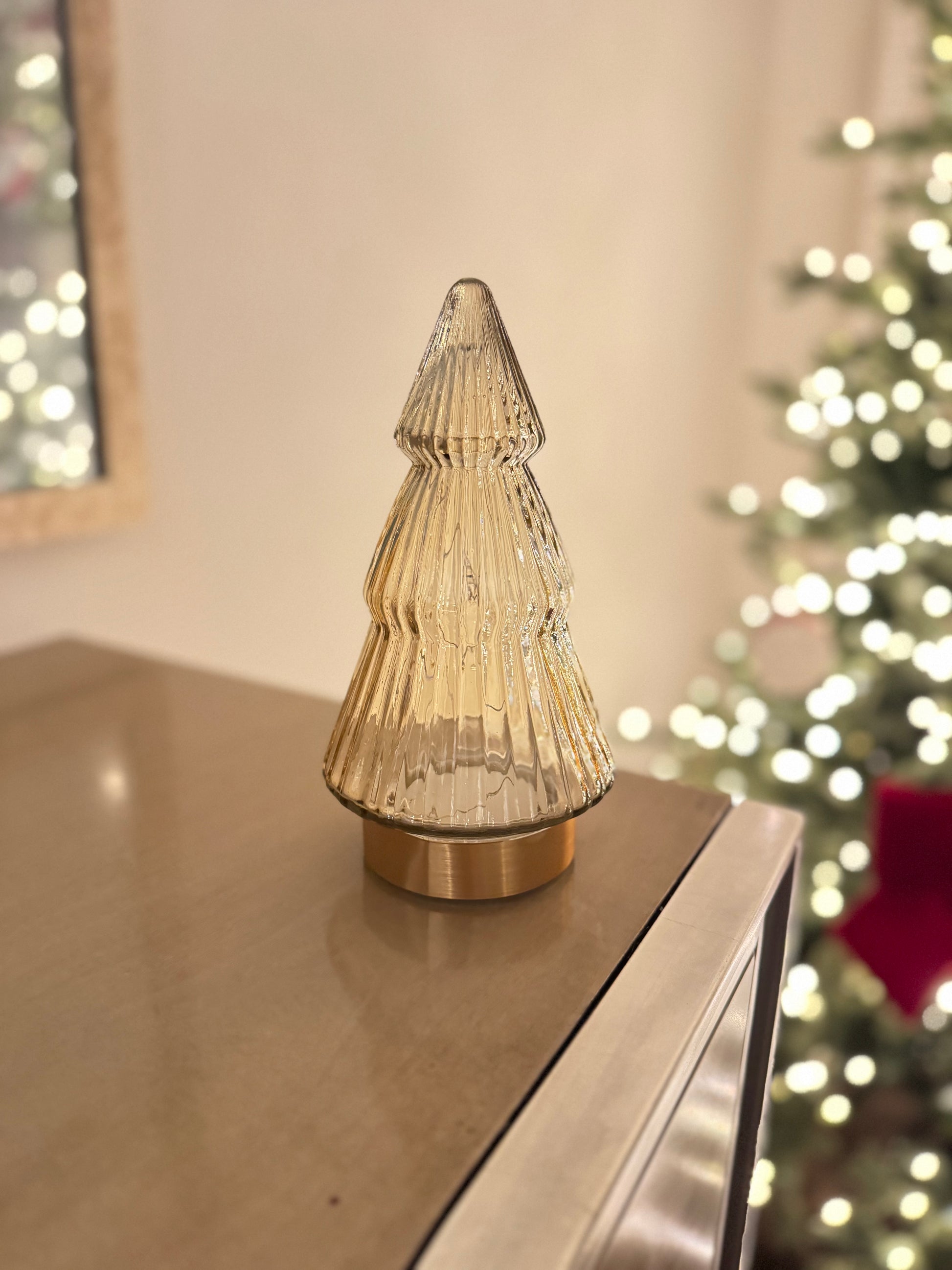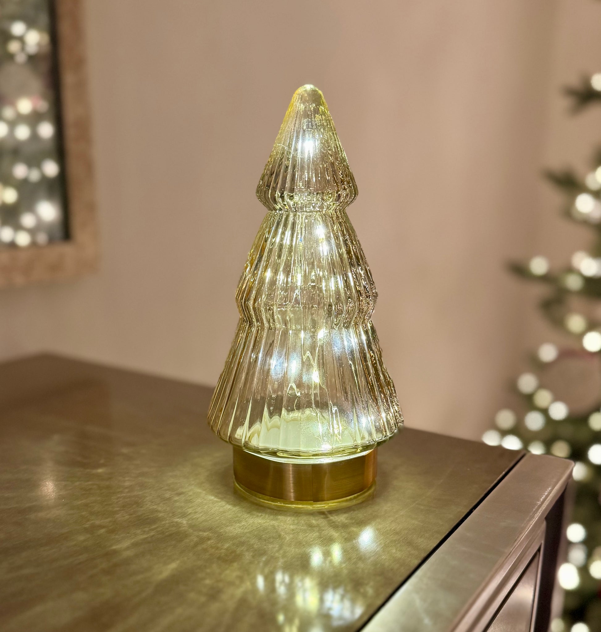 Glass Light Up Christmas Tree with Gold Base