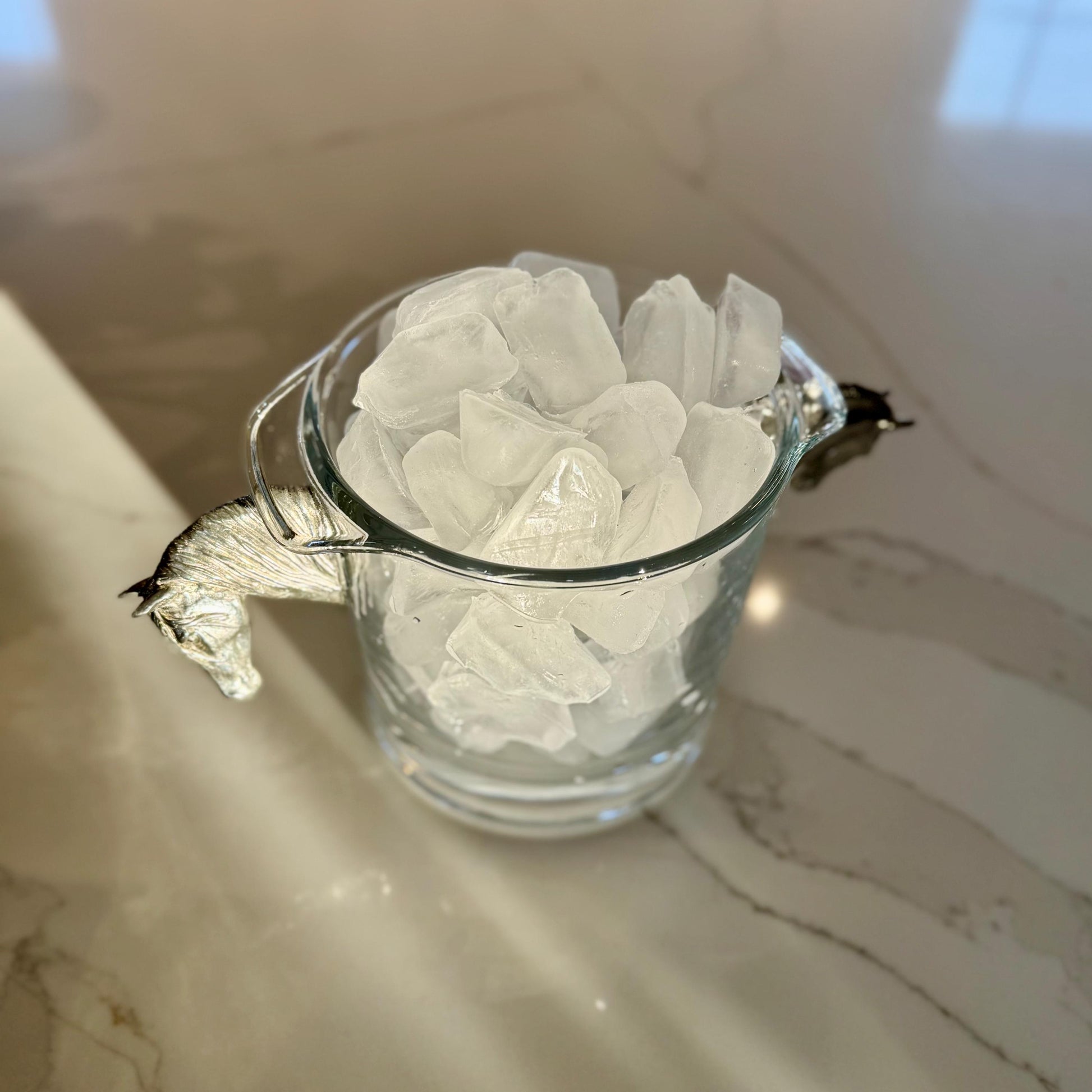 Glass and pewter horse head ice bucket, ideal for holding ice, wine or champagne, and even beer.