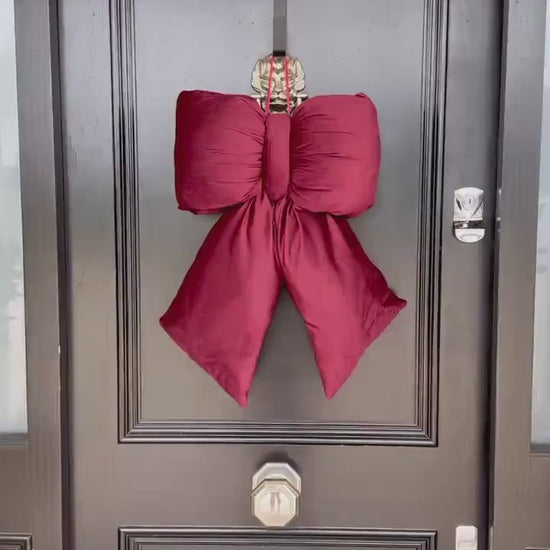 Maroon Red Velvet Plush Bow: Burgundy Door, Tree & Christmas Decor