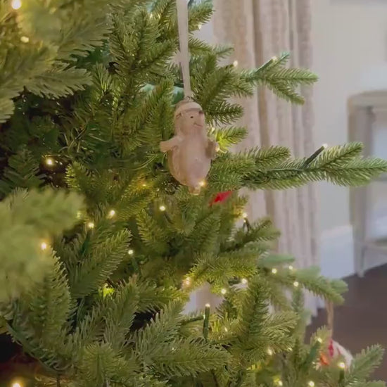 Crafted with beautiful attention to detail and finished in soft neutral tones, these woodland ornaments look perfect nestled among twinkling lights or paired with other nature-inspired decorations. Each hedgehog hangs from a delicate white ribbon, ready to add instant charm to your festive display.