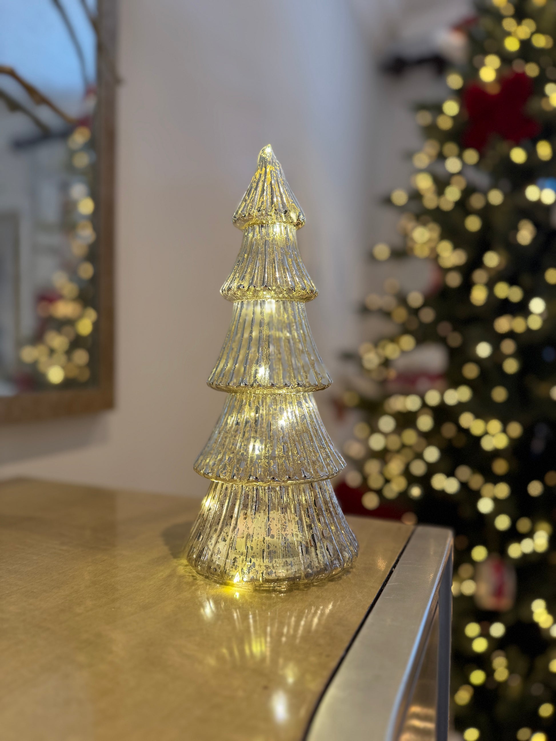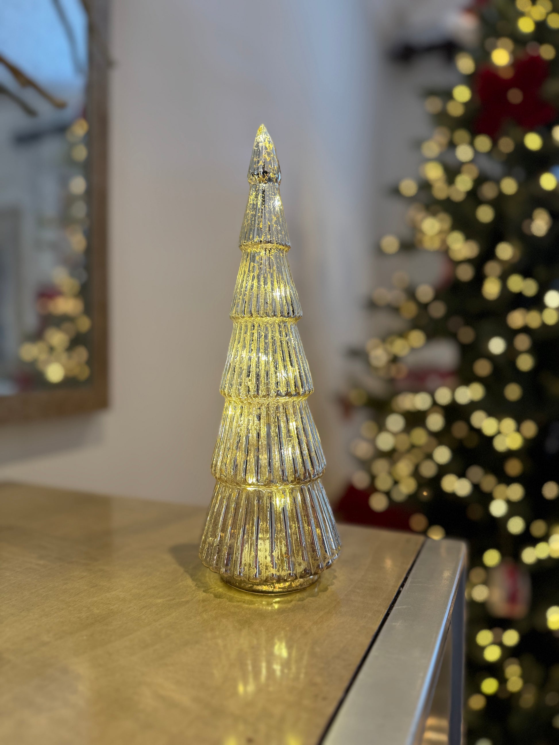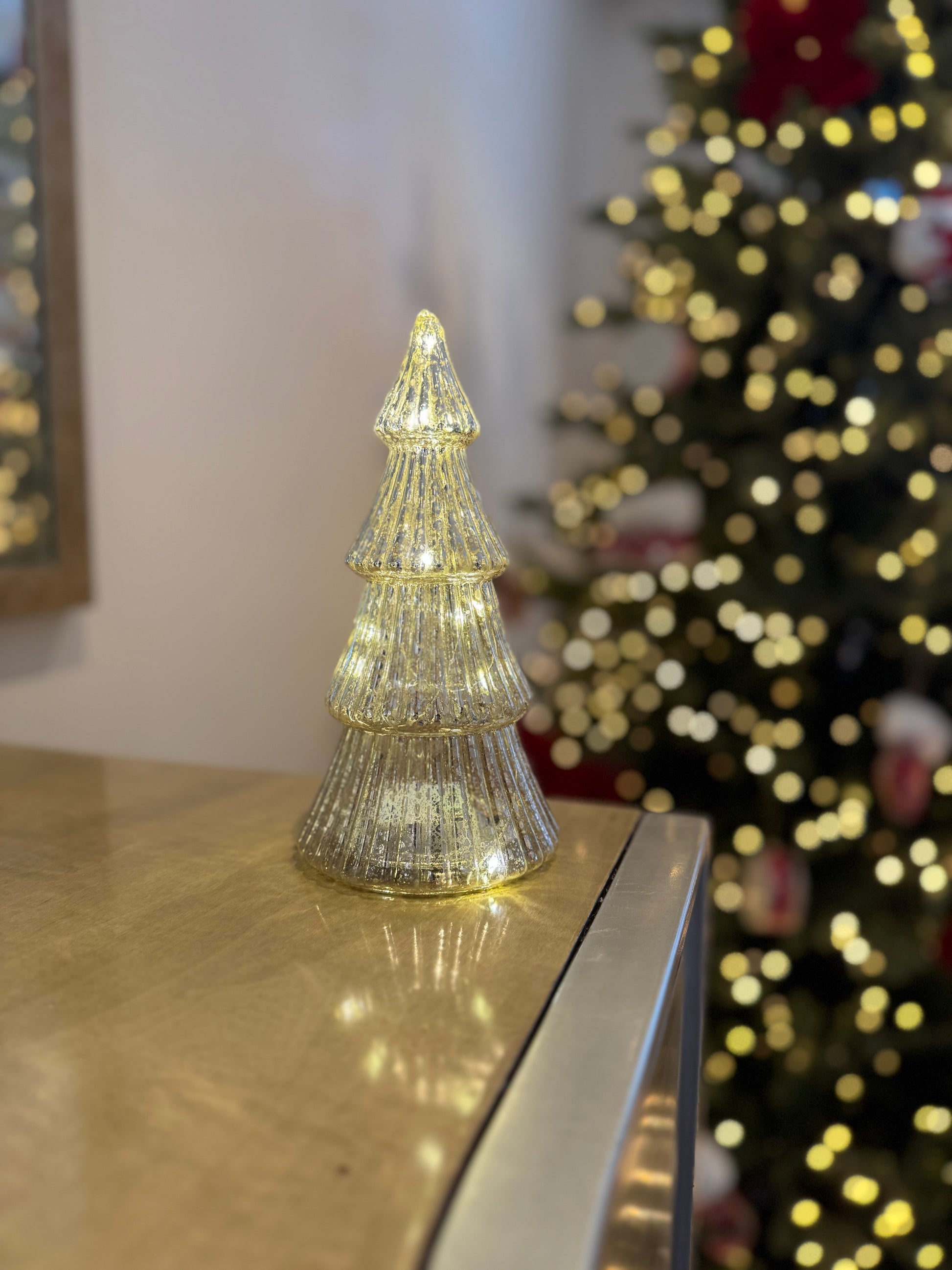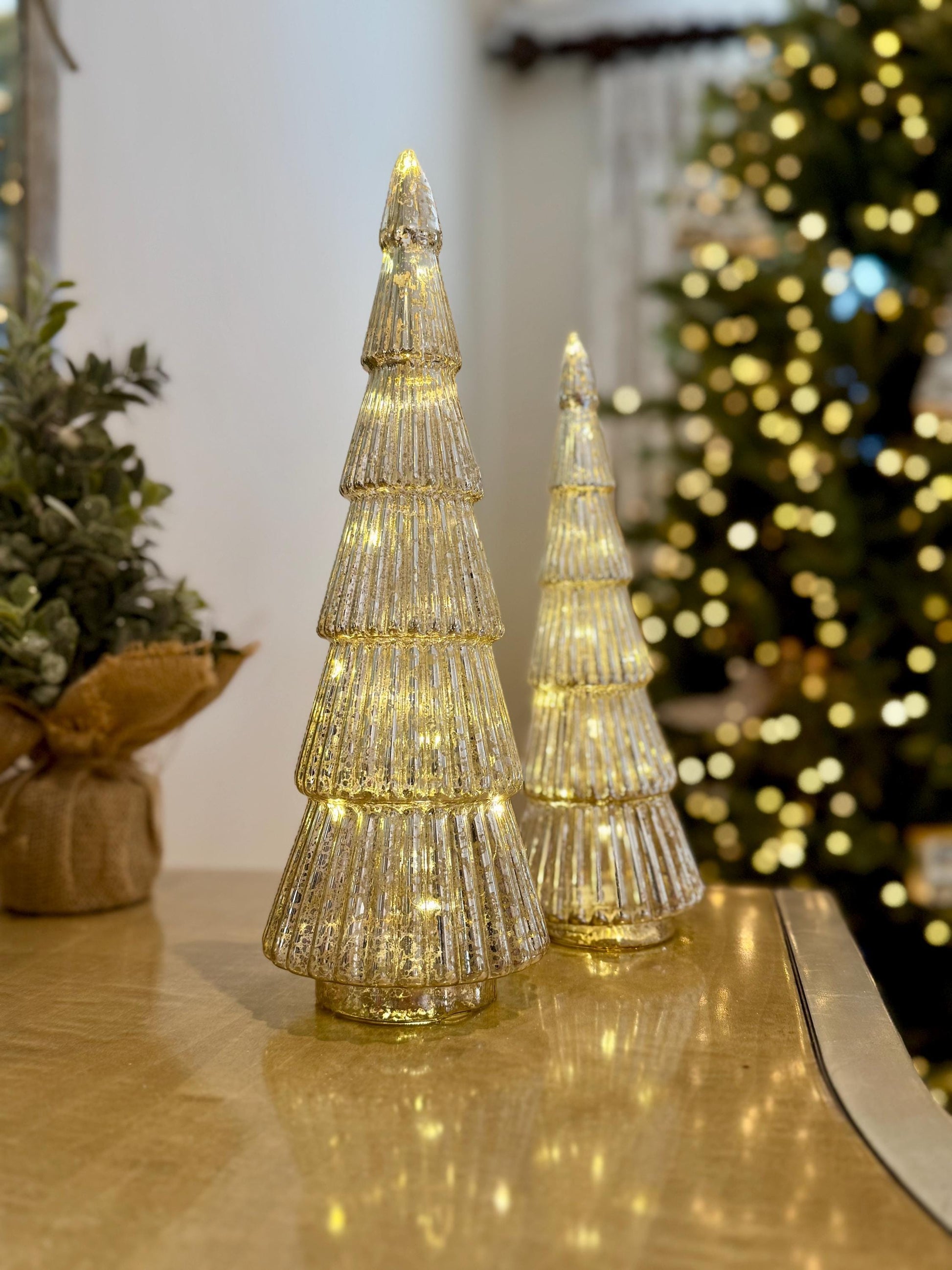 Bring timeless elegance and a soft festive glow to your home with our illuminated glass Christmas trees. Crafted with ribbed glass that beautifully reflects light, each tree is filled with warm LED fairy lights, creating a magical sparkle perfect for the season.