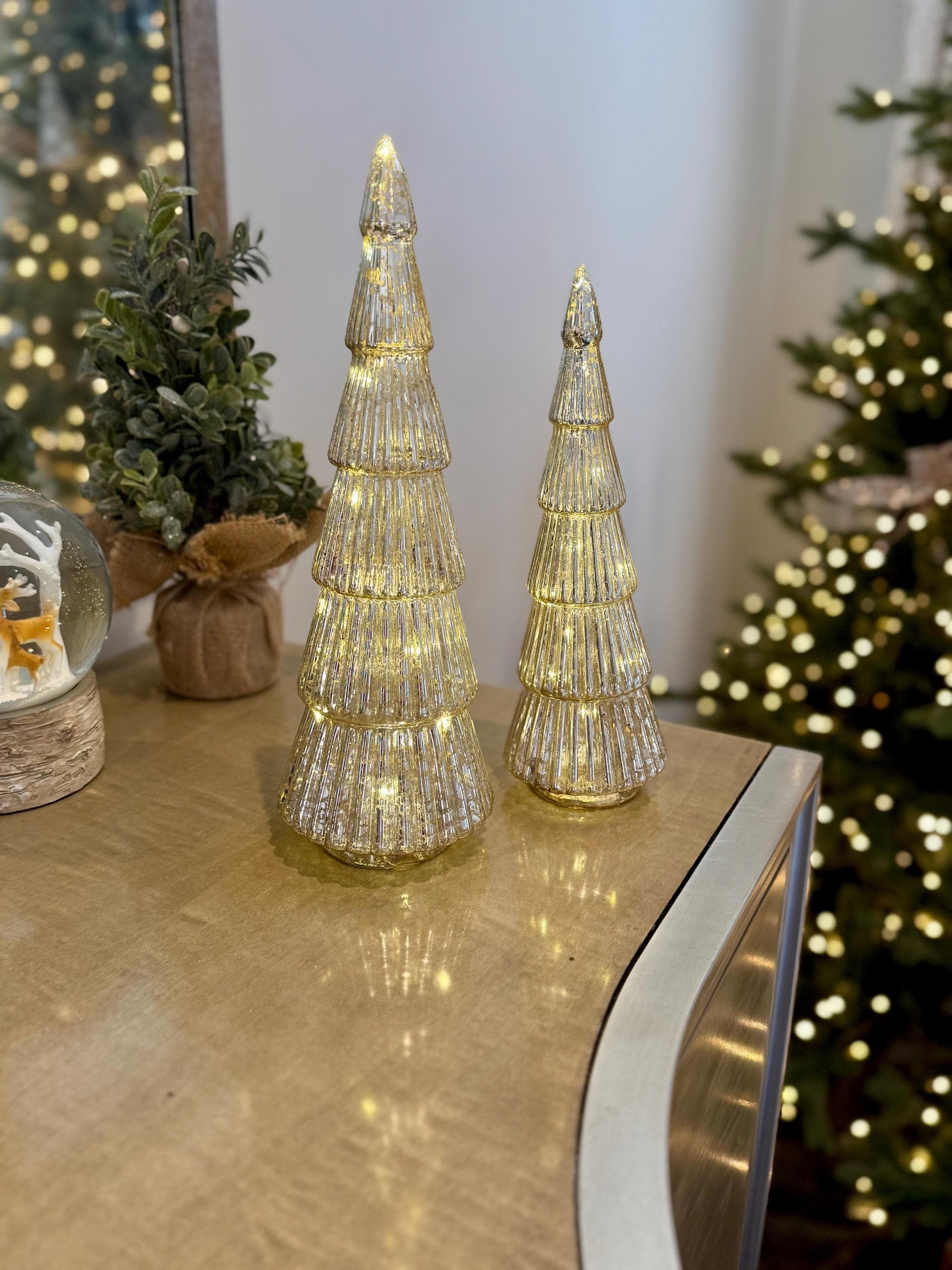 Ribbed Glass Light Up Christmas Trees - Various Sizes