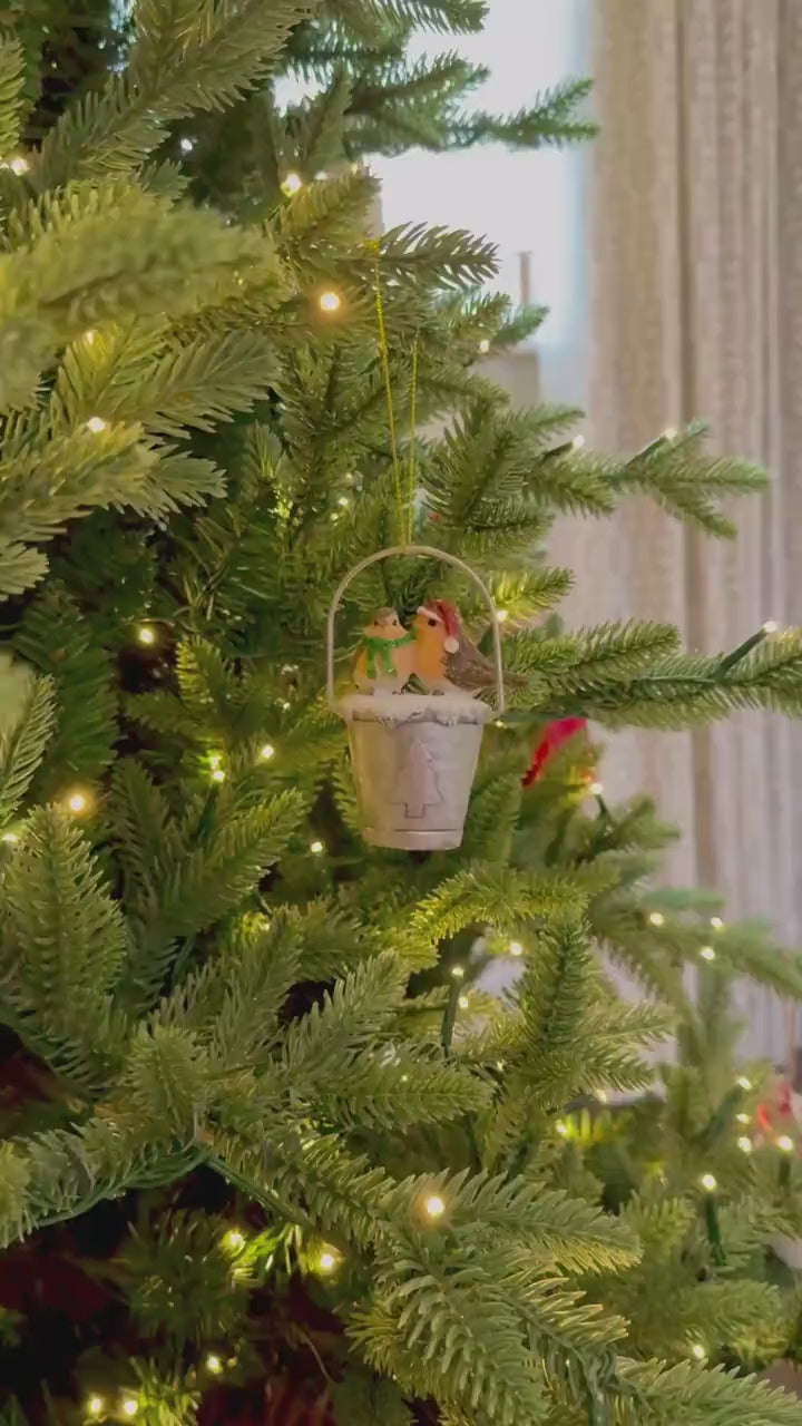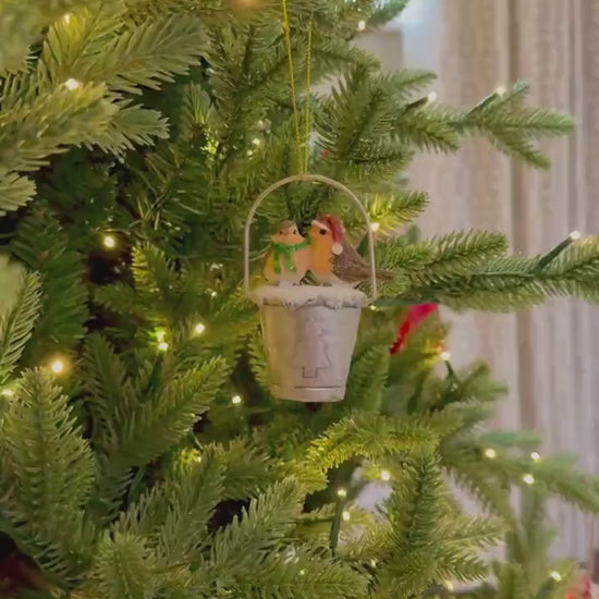 Bring a touch of festive cheer to your Christmas tree with our adorable Robin Bucket Bauble.
